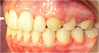 Após o tratamento ortodôntico e colocação de prótese fixa de cerâmica, para colocação do dente canino.