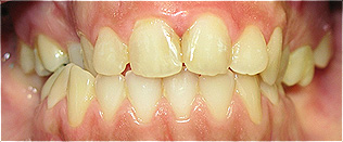 Apinhamento dentário com os dentes caninos em desoclusão (classe II, divisão 2).